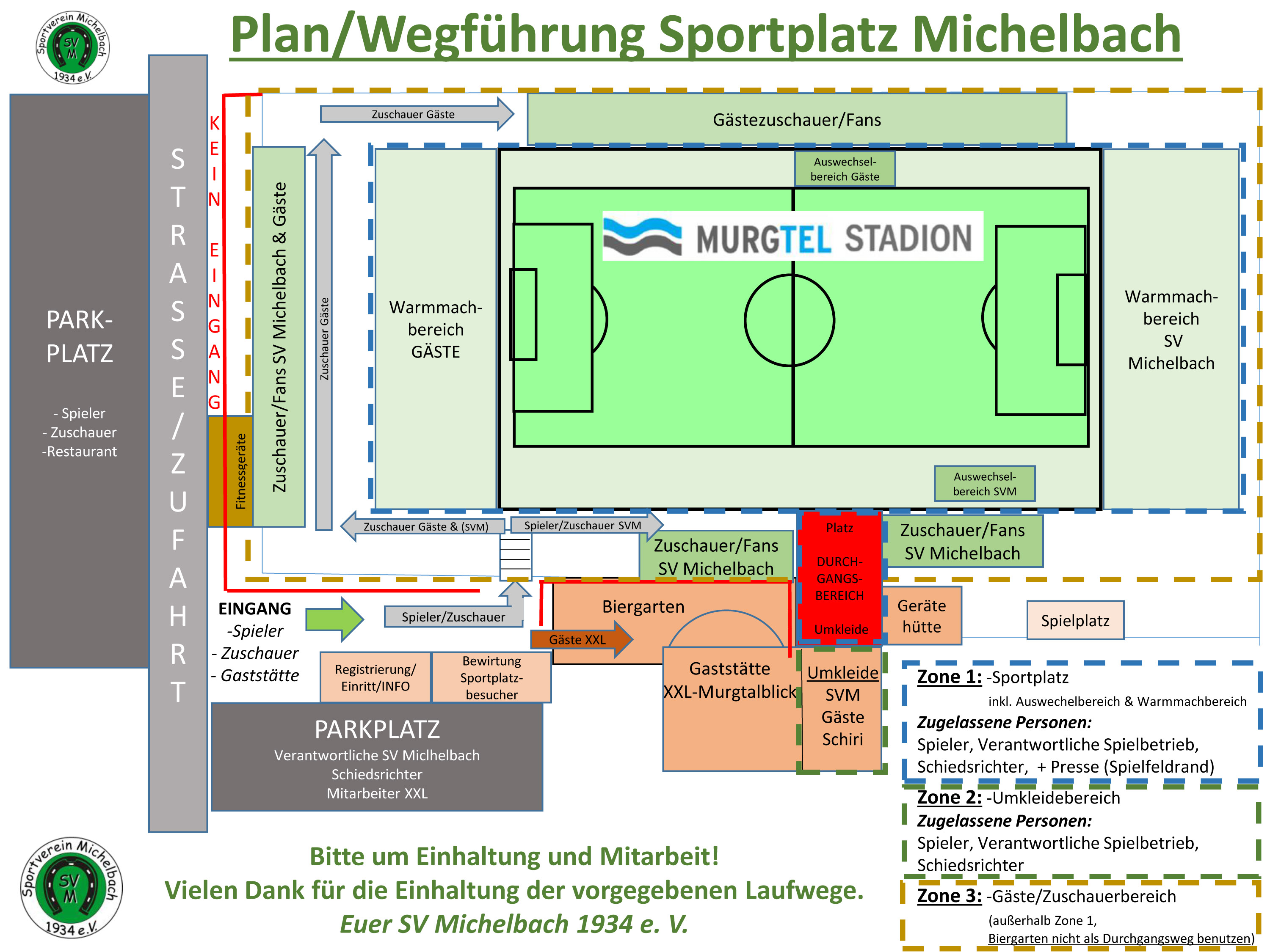 Unser Hygienekonzept orientiert sich an den Handlungsempfehlungen des DFB-Leitfadens „Zurück ins Spiel“. Es gilt für den Trainings- und Spielbetrieb und die hiermit im Zusammenhang stehenden notwendigen Tätigkeiten im Bereich der Sportstätte. Zudem werden Regelungen für Personen im Publikumsbereich der Sportstätte festgehalten. Zur besseren Abtrennung werden die genannten Bereiche in Zonen eingeteilt. Genauere Inhalte werden untenstehend erläutert.