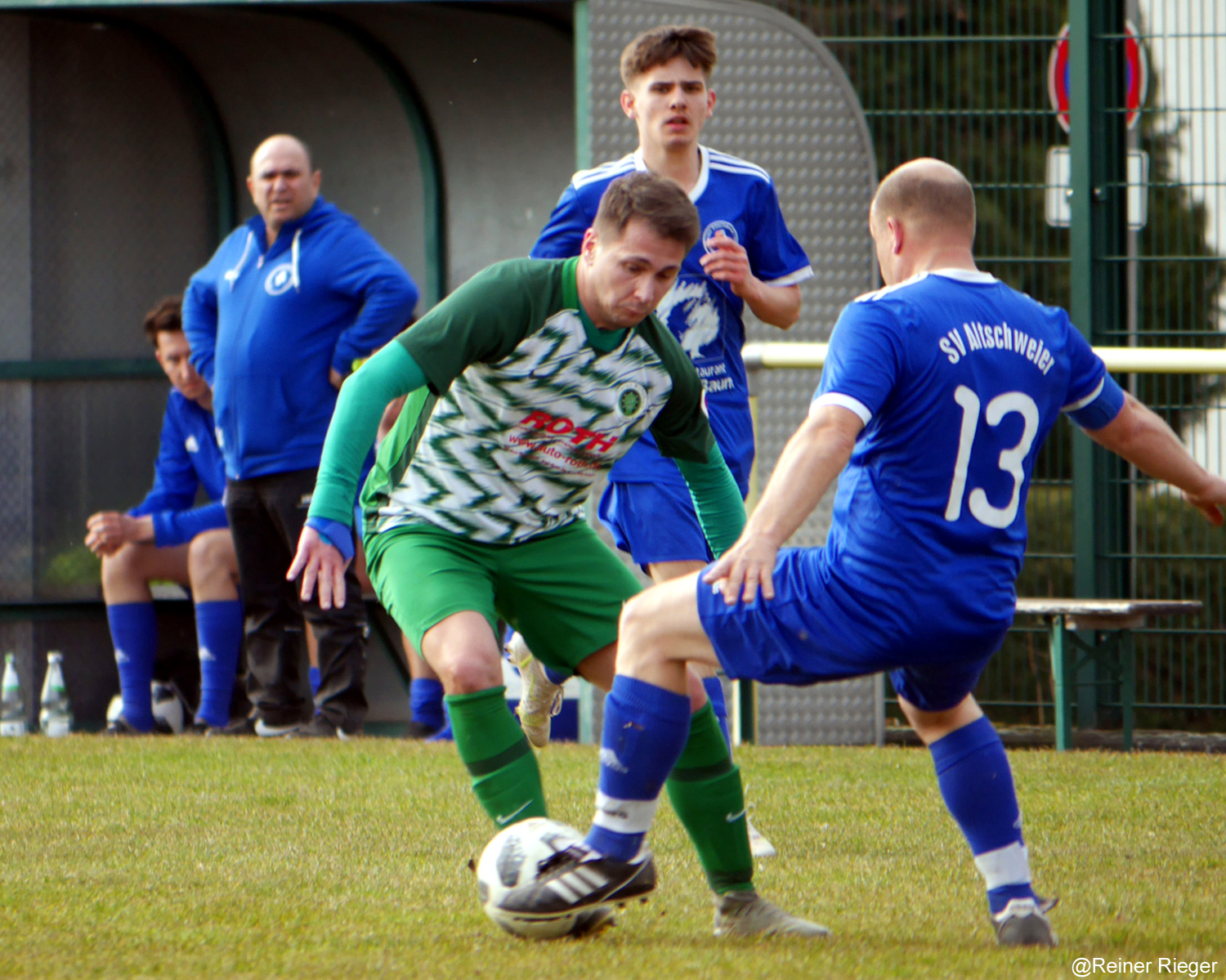 Beim SV Altschweier siegte Michelbach letztendlich glücklich aber verdient mit 2:3. Bereits im 1. Abschnitt verpassten die Grünweißen nach hochkarätigen Chancen den Deckel auf den Topf zu legen, sodass nach gutem Spiel letztendlich das Salz in der Suppe fehlte. Bereits nach drei Spielminuten hämmerte SVM Torjäger Kevin Schlindwein eine Direktabnahme im Strafraum zum 0:1 in die Maschen. Eine Unachtsamkeit in der SVM Abwehr brachte den Einheimischen in der 7. Minute den 1:1 Ausgleichstreffer. In den folgenden Spielminuten lief das Spiel in Richtung der Einheimischen. Bereits in der 11. Minute sahen die Fans einen schönen SVM Angriff über das Geburtstagskind Victory Erhahon, welcher mustergültig und uneigennützig den Ball im Strafraum auf Kevin Schlindwein zurücklegte. Eiskalt und platziert setzte der SVM Stürmer das Leder zum 1:2 in die Maschen. Im Anschluss gab es bei sonnigem Fußballwetter SVM Ausbauchancen im Minutentakt. So scheiterte Valentin Mazreku in der 17. Minute nach einem erneuten Rückpass im Strafraum aussichtsreich. Lediglich in der 22. Minute setzten die Einheimischen ein Lebenszeichen, als der Ball am Aluminium landete. Michelbach hatte durch Daniel Hoff in der 30. Minute eine weitere Ausbaumöglichkeit liegen lassen, als er freistehend aus fünf Meter Torentfernung mit einem Kopfball wohl von der Sonne geblendet vergab. In der 31. Minute war es Kevin Schlindwein welcher mit dem Knie ebenfalls aus fünf Meter glücklos blieb. In der 35. Minute war es erneut Schlindwein, welcher nach schönem Rückpass von Erhahon aus gut 11 Meter das Spielgerät anstatt ins Tor gefühlt ins Altschweiermer Wohngebiet hämmerte. Es kam dann wie es kommen musste. Aus dem Nichts gelang den Einheimischen kurz vor der Halbzeitpause in Folge eines Stellungsfehlers in der SVM Defensive der für alle überraschende 2:2 Ausgleich.