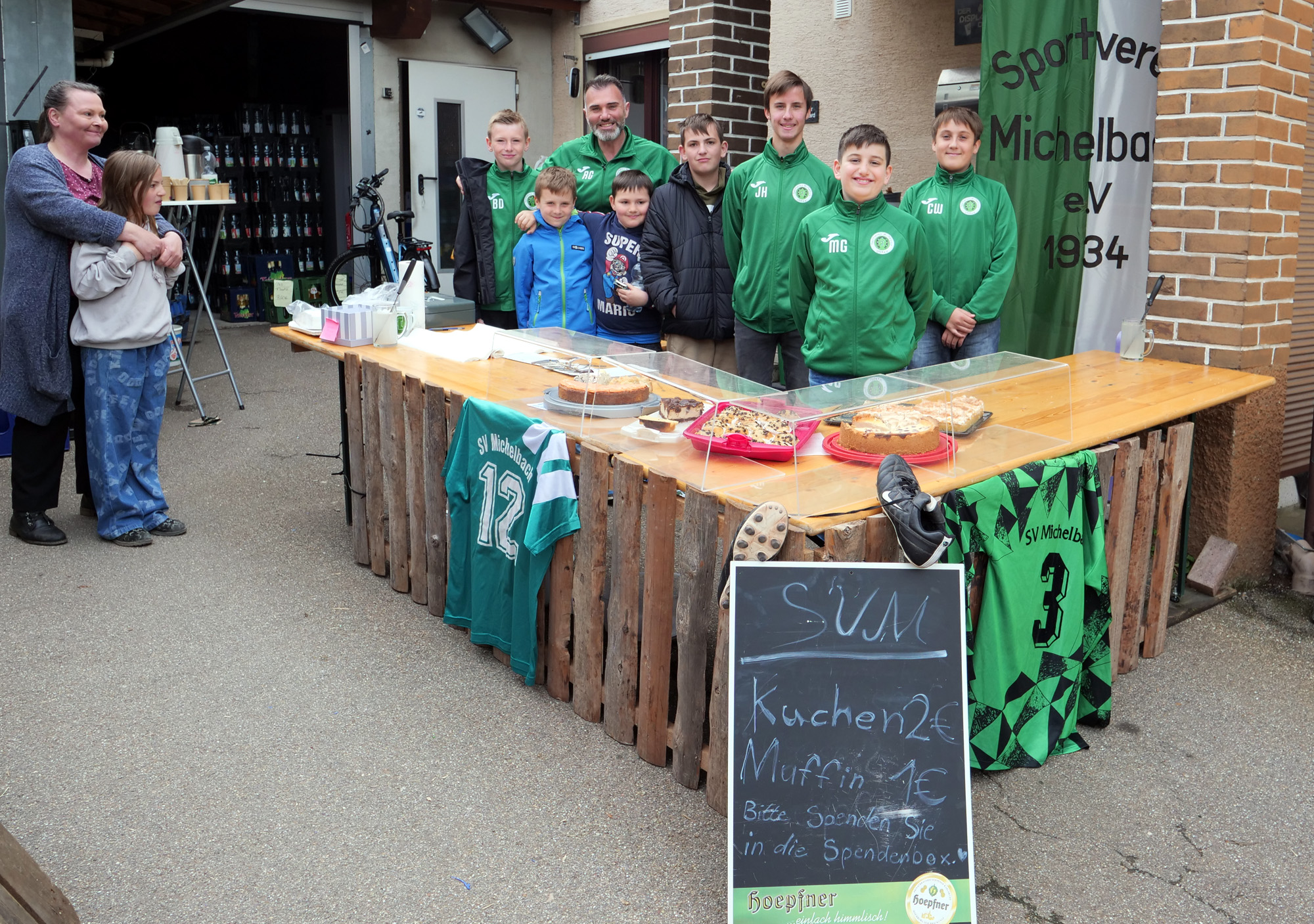 Am vergangenen Samstag, 26. April organisierten die Michelbacher Fußballkids zusammen mit ihrem Jugendleiter Riccardo Gandolfo ihren ersten Kuchenstand bei der Michelbacher Getränkehändlerin Mirjam Reichle. Die Jugendspieler halfen beim Verkauf des bestens geschmückten Fußballstandes tatkräftig mit, sodass neben dem positiven Außenbild und der Kameradschaft, auch einige Euros in der Jugendkasse klingelten. Die Jugendkids und ihre Verantwortlichen bedanken sich recht herzlich bei der Getränkehändlerin Mirjam Reichle und bei allen Kuchenkäufer.