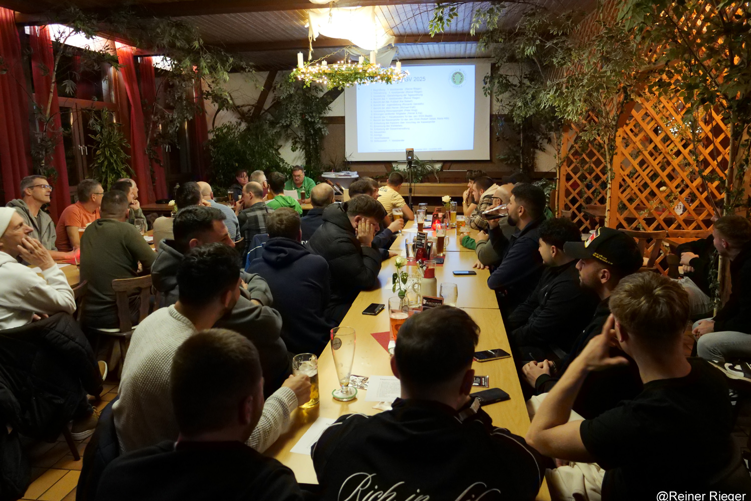 Auf der Großleinwand wurden die zurückliegenden Höhepunkte vom Vereinsvorsitzenden Reiner Rieger seit der vergangenen Generalversammlung 2024 bis November 2025 mit ausführlichen Infos verbunden in Form von zahlreichen Bildern den zahlreichen anwesenden Mitgliedern präsentiert.