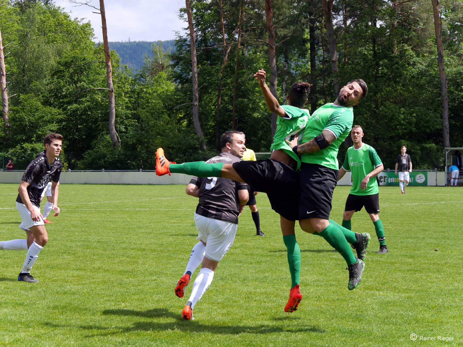 Nach einer vorbildlichen und geschlossenen Mannschaftsleistung gewinnt der SV Michelbach klar und deutlich mit 6:1 gegen den FC Neuweier. Bei bestem Fußballwetter und einer hervorragenden Schiedsrichterleistung von Thomas Zwick aus Elchesheim-Illingen, fuhr der SVM im MURGTEL Stadion einen hochverdienten Heimsieg ein. Der Torreigen wurde bereits in Minute 3 eröffnet, als Damian einen sauberen Pass auf Torjäger Labi spielte, welcher mit einem Flachschuss dem Schlussmann wenig Abwehrmöglichkeit ließ. In der 7. Minute heißen erneut die Koordinaten Damian und Labi, welche das 2:0 einläuteten. Platziert und clever konnte Damian abschließend aus kurzer Distanz vollenden. Eine Minute später schlägt das Sturmduo erneut zu. Damian erobert sich eine gute Schussposition, welche im Abschluss Labi zum 3:0 einhämmern konnte. Die Gäste zeigten sich in dieser Phase des Spieles komplett geschockt und durchweg neben sich. Fast hätte der bravourös aufspielende Robert in der 12. Minute seine vorbildliche Leistung mit einem Tor gekrönt, als er aus gut 30 Meter direkt abzog und lediglich den Pfosten traf. In der 14. Minute war Neuweier das erste Male gefährlich vor dem SVM Tor, wobei eine Chance neben dem Gehäuse landete. Michelbach bestimmte weiter das Spielgeschehen und hätte in der Folgezeit weitere Treffer erzielen können. So scheiterte Arnaud mit einem Heber knapp in der 15. Minute. Nach einem SVM Lapsus in der 23. Minute hatte man dennoch Glück, als die Gäste im SVM Schlussmann Adis ihren Meister fanden. In der Folgezeit bestimmte der heimische SVM weiter das Spielgeschehen. Robert hatte in dieser Phase eine weitere gute Führungsmöglichkeit, als er sich kraftvoll durchsetzt und denkbar knapp scheiterte. Auch Labi hatte kein Glück, als er einen langen Ball an die Querlatte köpfte. Kurz vor dem Halbzeitpfiff musste erneut SVM Schlussmann Adis seine klasse zeigen, als er auf der Torlinie eine Chance der Gäste klärte.