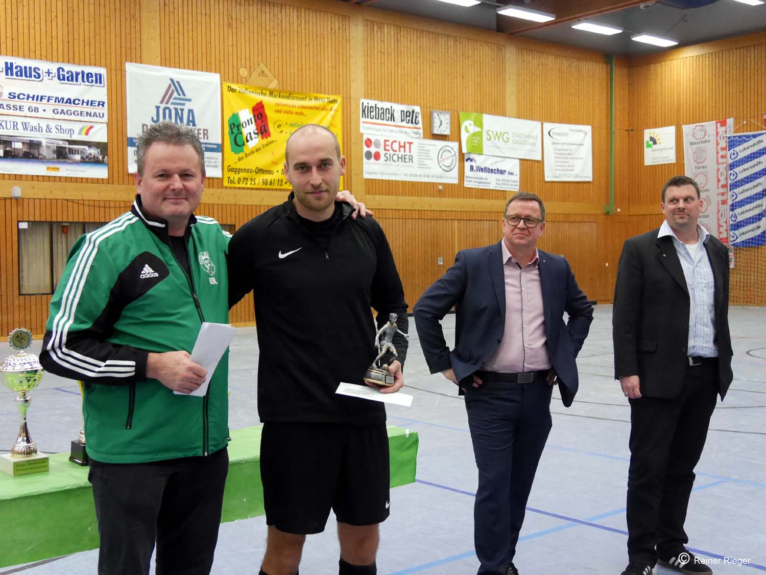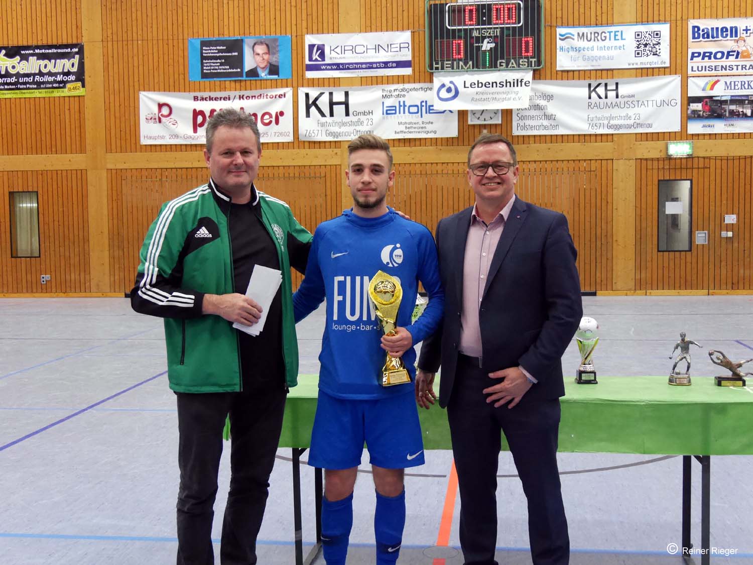 Torschützenkönig mit 10 Treffer Eren Okan vom VfB Gaggenau 2001 zusammen mit Bürgermeister Michael Pfeiffer und Reiner Rieger