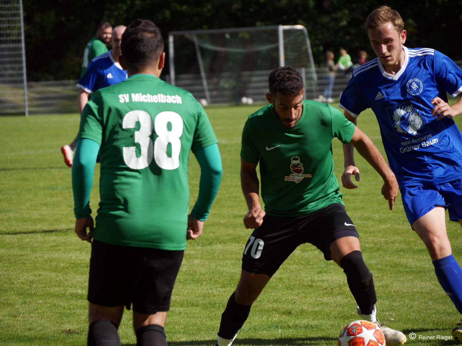 In einem intensiven Kreisligaspiel zweier Spitzenteams um die Meisterschaft setzte der heimische SVM im MURGTEL Stadion vor allem im 2. Abschnitt die Akzente. Im 1. Abschnitt hatte Michelbach zwar ein deutliches Plus an Spielanteile und vor allem auch Tormöglichkeiten, verpasste aber vor dem Tor die Chancen in Zählbares umzusetzen. So scheiterte Florin Didea einige male aus guter Position. Auch der glänzend aufspielende Daniel Hoff hatte wenig Glück im Torabschluss. Es dauerte bis zur 36. Minute, als der gut leitende Unparteiische nach einem Foulspiel an Valentin Mazreku auf den Strafstoßpunkt für Michelbach zeigte, welchen der gefoulte Stürmer selbst an die Unterkante der Querlatte setzte. Michelbach war trotz dieser vergebenen Chance weiter gedankenschneller. Eine Minute später setzte erneut Daniel Hoff punktgenau einen Flankenball, welchen Kevin Schlindwein mit dem Kopf zum 1:0 vollenden konnte. Kurz vor der Halbzeitpause hatte man im eigenen Abwehrbereich Glück, als SVM Schlussmann Biagio Ciuccio aus kurzer Distanz eine 1:1 Situation klären konnte.
