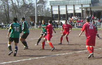 Forbach dagegen spielte auf Konter und erzielte dabei in der 32. Minute den 0:1 Führungstreffer, als ein Distanzschuß unglücklich ins Tor fiel. Die Grünweißen setzten weiter nach und hatten bereits eine Minute später die Ausgleichschance durch J. Höfflin auf dem Fuße. Spielertrainer A. Ahmetovic hatte mehr Glück, als er in der 40. Minute im 5 Meterraum den 1:1 Ausgleichstreffer erzielen konnte. Psychologisch mehr als ungünstig kam Forbach nach Unstimmigkeiten im Abwehrverhalten mit dem Halbzeitpfiff zum 1:2 Führungstreffer.
